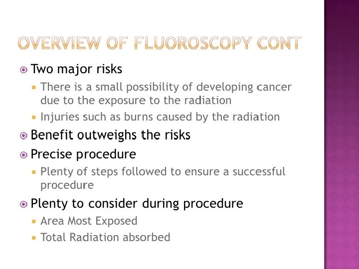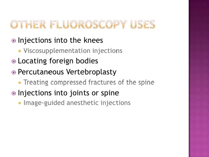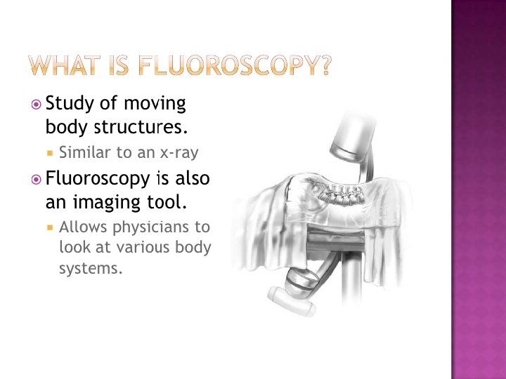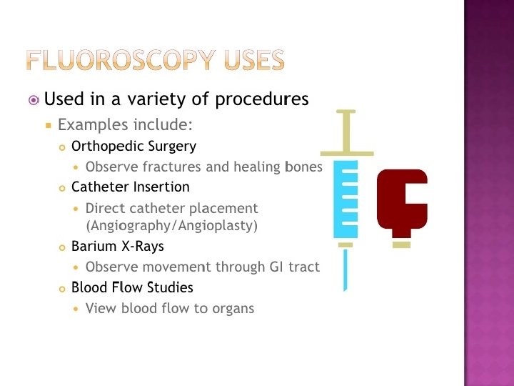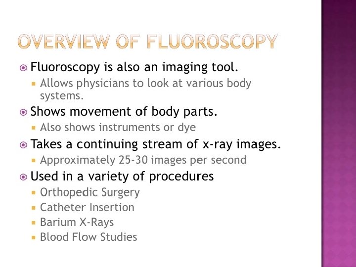 � X-rays were put to diagnostic use very early, before the dangers of ionizing radiation were discovered. The medical specialty of radiology grew up around the new technology, and new diagnostic tests involving X-rays were developed, it was natural for the radiographers to be trained and adopt this new technology. This happened first with fluoroscopy, computed (1960 s), and mammography � tomography Ultrasound (1970 s) and magnetic resonance imaging (1980 s) was added to the list of skills used by radiographers because they are also medical imaging, but these disciplines do not use ionizing radiation or X-rays.