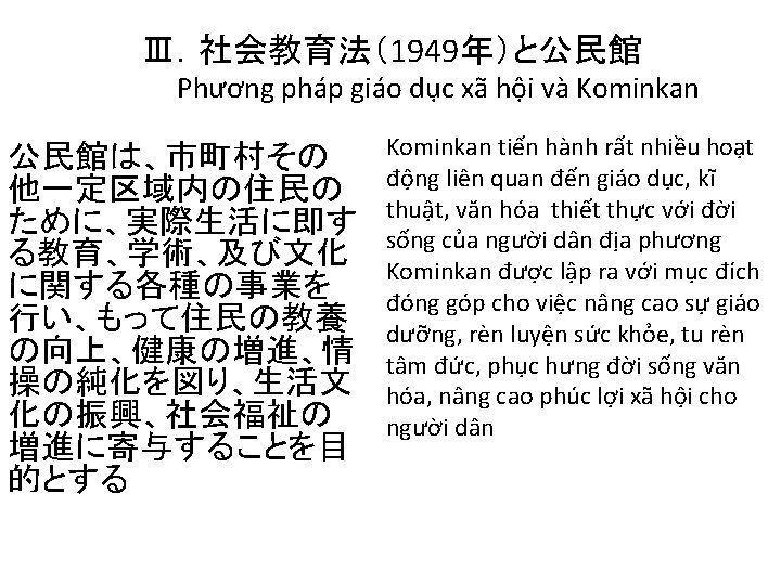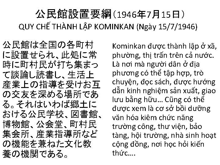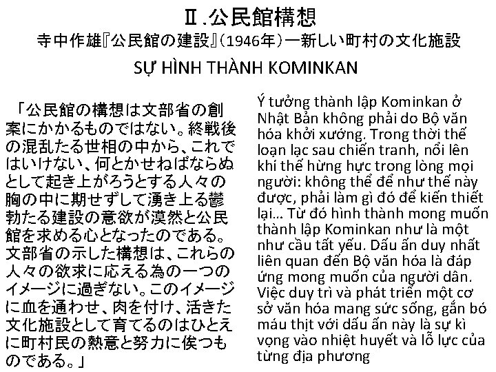 公民館構想ー寺中構想ー Mô hình Kominkan – Ý tưởng của Teranaka Kominkan là cơ sở giáo dục xã hội mang tính dân chủ