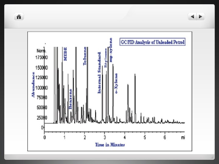 Analysis of Flammable residue l The gas chromatography (GC) is the most sensitive and reliable instrument for characterizing residue l Most arson is started by petroleum distillates (gas/kerosene) l These are made of H and C called hydrocarbons l The GC separates the hydrocarbon components and produces a unique pattern for each petroleum product