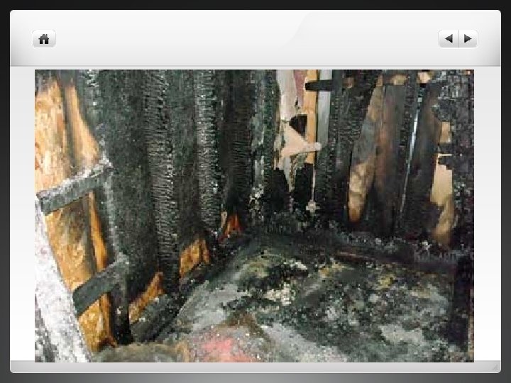Searching the fire scene l Examine as soon as fire is extinguished l Gasoline and kerosene most common accelerants l Evidence of ignition device (candle/matches) could be arson related l Irregular shape pattern on floor/ground means arson-from accelerant