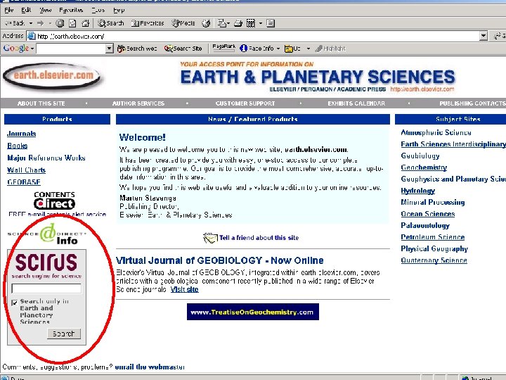 About Scirus A free web search engine for scientific information: covering both Web and proprietary information Developed by Elsevier Science In cooperation with FAST (alltheweb. com) Launched in April 2001
