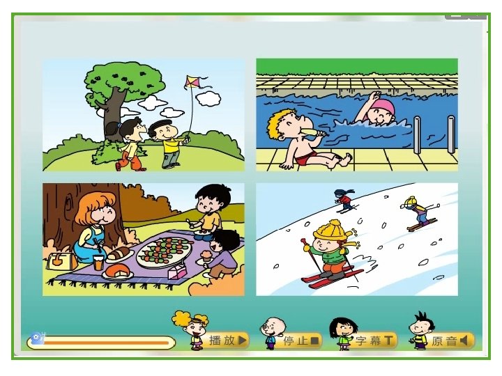 While-reading Question: 1. What’s the weather like in four seasons? 2. What can they do in their favorite seasons? season weather activity warm see ducks hot go swimming cool cold play with the leaves play with the snow