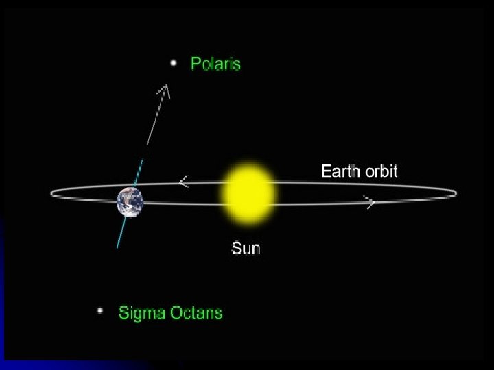 Earth Seasons The Earth orbits the Sun in a counterclockwise direction. l The North Pole always points towards Polaris. l