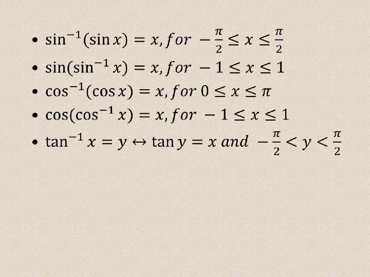 Inverse Cosine Function f(x) = cos x must be restricted to find its inverse. y y = cos x x Cos x has an inverse function on this interval.