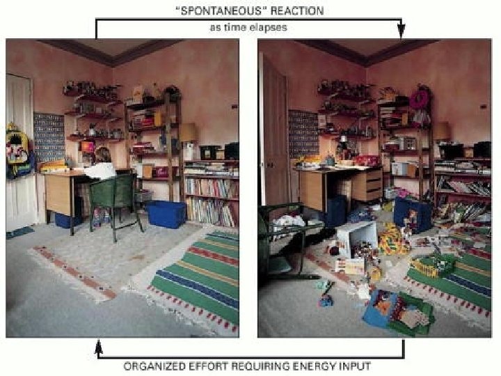 Follow the Entropy § Entropy a measure of disorder in the physical system. § the second law of thermodynamics – the universe, or in any isolated system, the degree of disorder (entropy) can only increase. § the movement towards a disordered state is a spontaneous process.