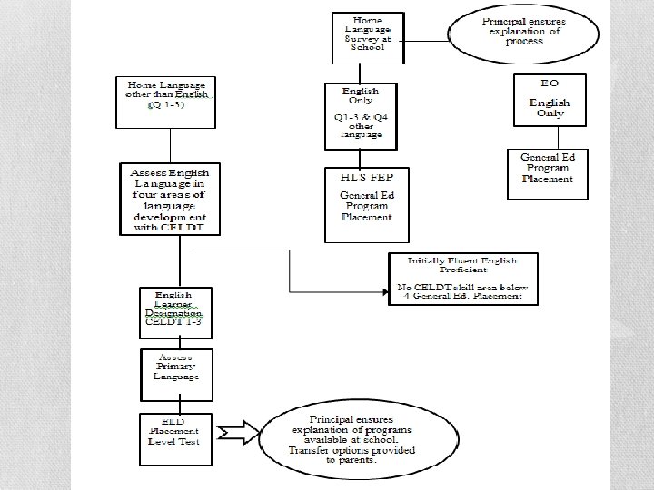 EL Students with IEP’s • All identified EL students must receive ELD • How an EL student with disabilities receives ELD is dictated by the IEP team • EL students with disabilities should receive ELD with their peers in the mainstream wherever possible. • If an EL student must receive ELD in a self-contained Special Education setting, that teacher is still required to provide designated ELD instruction. Goals for that instruction should be outlined and monitored by the IEP team.