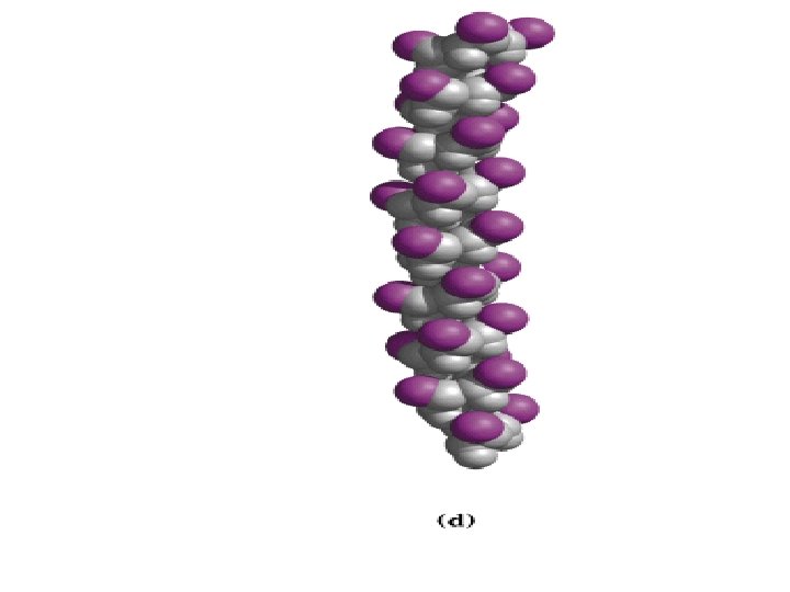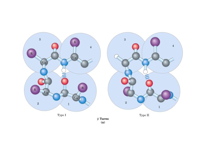 Characteristics of a helics: Polypeptide chains containing L-aminoacid residues make righr handed helices. Therefore all the a helical conformations in living systems are right handed. No of AA per turn (n)…… 3. 6 Distance traveled in one turn (pitch) p 5. 4 Ao Torsion angles f= -57 o and j= -47 o Hydrogen bonding between the C=O group of nth AA residue to the NH group of the n+4 th AA residue in peptide. Polypeptide with D-AA residue make left handed a helics f= +57 o and j= +47 o Rest of the parameters are same as for right handed helics.