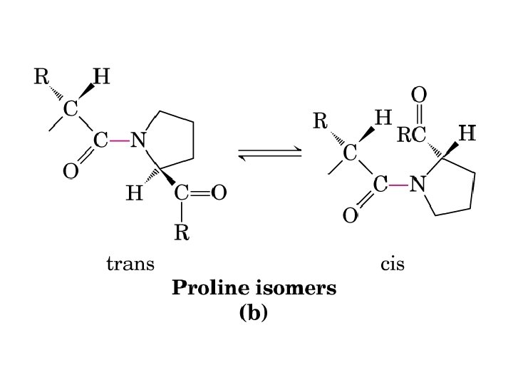 Nature of the Peptide Bond: In 1930 s and 1940 s Linus Pauling and Robert Corey analyzed amino acids and dipeptide structures by X-ray crystallography. Their main observations were: 1. The C-N bond in peptide group is 0. 13 Ao shorter than the regular C-N single bond (indicating partial double bond character). 2. The C=O bond is 0. 02 Ao longer than the regular C=O double bond in aldehydes and ketones (partial single bond character) 3. These observations suggested that there is a resonance or partial sharing of two pairs of electrons between the carbonyl oxygen and the amide nitrogen. Oxygen has partial –ive charge and Nitrogen has partial +ive charge. 4. Thus the peptide bond is a rigid planer structure stabilized with – 85 k. J/mole resonance energy. With only a few exception, all the peptide groups assume trans conformation i. e. Ca atoms are on the opposite sides of the peptide bond.