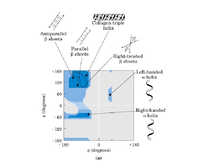 Polypeptide backbone conformation: Based on the fact that peptide bond is a planer and rigid structure, the poly peptide backbone conformation will depend mainly on the torsion angle or rotation angles about Ca-N bond ( f angle) and Ca-C bond ( j angle) Whenever there is a possibility of free rotation of groups across a bond, amongst all the possibilities only those conformations are most stable where there is minimum steric hindrance.
