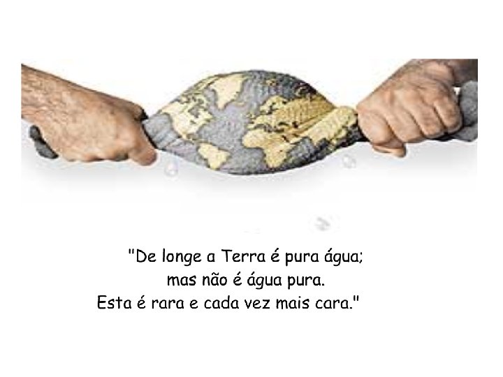 ÁGUA NO PLANETA • Ano 6000 a. C. a população no planeta – 5 milhões de habitantes • 1650 – 500 milhões de hab. (taxa de crescimento de 0, 3% ano) • 1850 – 1 bilhão de habitantes • 1930 – 2 bilhões de habitantes • 1970 – 3, 6 bilhões de hab. (taxa de crescimento de 2, 1% ano) • 2000 – 6, 0 bilhões Supõe-se que a cada 20 anos dobram os volumes de água consumida pela humanidade. Na Europa – prevê-se que no ano 2050, iguala-se os volumes captados e disponíveis, em 1970 esta relação era de 1 : 9.