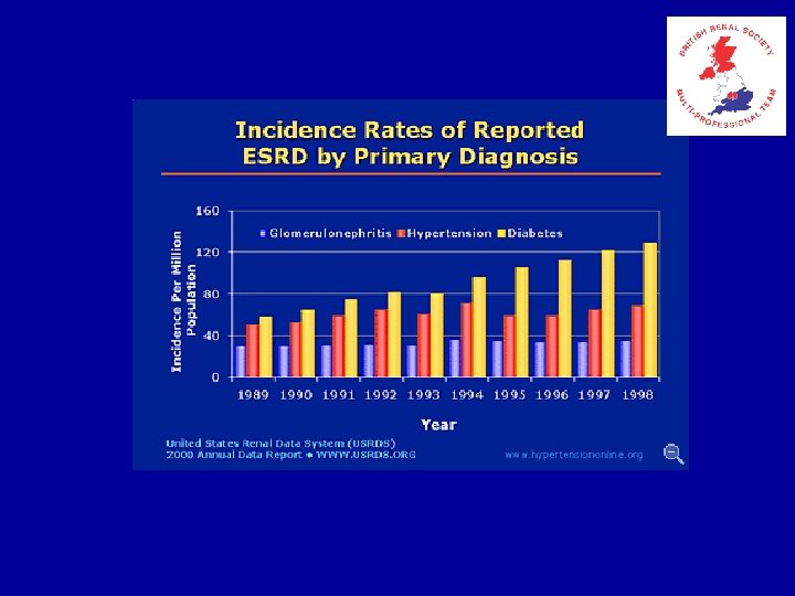 Prevalence of renal replacement therapy Take-on rates /pmp England 98 Wales 118 France 200 Italy 260 USA 315