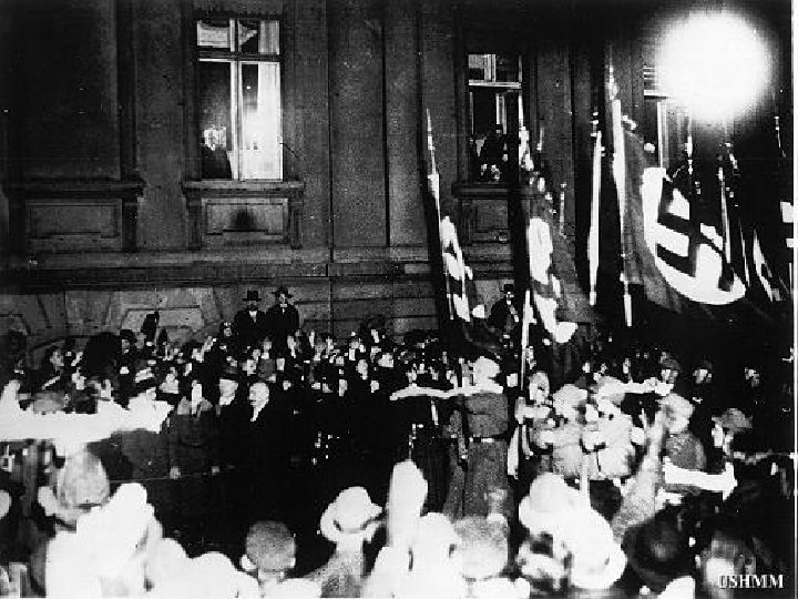 -HITLER PROMISES RELIEF FROM HARD ECONOMIC TIMES -1932 NAZI PARTY LARGEST PARTY IN REICHSTAG (LOWER HOUSE OF GERMAN PARLIAMNET) -HITLER PLACED 2 ND TO VON HINDENBURG IN PRESIDENTIAL ELECTION