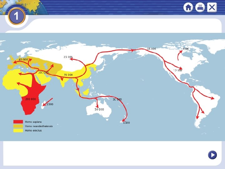 Section 1 Human Origins in Africa Fossil evidence shows that the earliest humans originate in Africa and spread across the globe. NEXT
