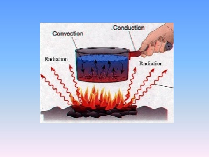 Convection • fluid: anything that flows (liquids, gases) • convection: transfer of energy in a fluid by the movement of the heated particles • Convection currents are rising-and-sinking actions that transfer heat from warmer to cooler parts of a fluid.