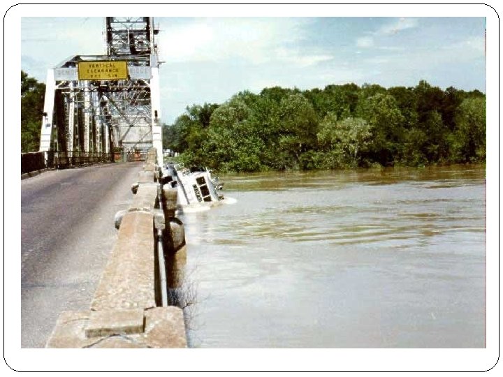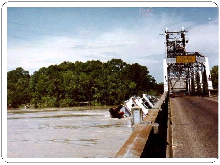 The bridge didn't open and the boat can't stop. Notice that the tug has released the barges. He is backing as hard as possible to try and avoid a collision with the bridge.