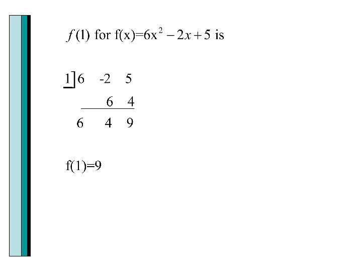 Example Use synthetic division and the remainder theorem to find the indicated function value.