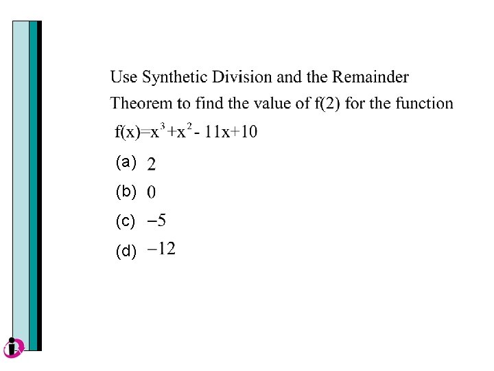 Example Divide using synthetic division.