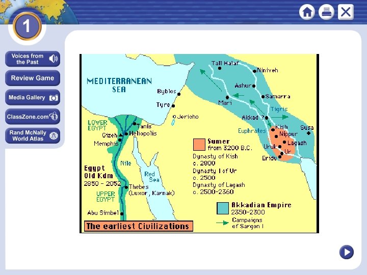 SECTION 3 CASE STUDY: Ur in Sumer Civilization Emerges in Ur The City of Ur • Flourished about 3000 B. C. in what is now southern Iraq • Population about 30, 000; live in well-defined social classes • Rulers, priests and priestesses, wealthy merchants, artisans, soldiers An Agricultural Economy • Food surpluses keep the economy thriving Life in the City • Families live in small houses tightly packed near one another • Artisans make trade goods and weapons for Ur’s army Continued. . . NEXT