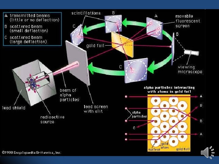 Rutherford’s Gold Foil Experiment l Firing a stream of tiny positively charged particles at a thin sheet of gold foil (2000 atoms thick)