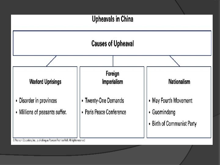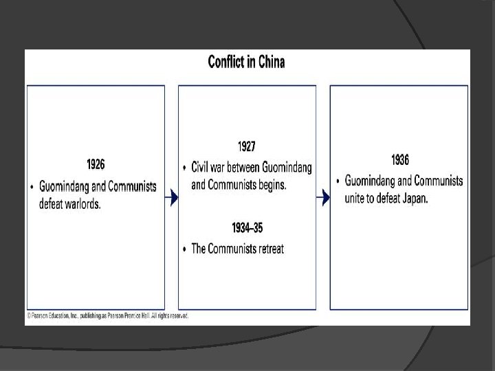 The Chinese Republic in Trouble � After the death of the second president of China, local warlords seized power, and the influence of foreign powers increased. � In 1919, the May Fourth Movement sought to strengthen China and end foreign domination by rejecting Confucianism and many traditional practices. � Some Chinese also turned to Marxism.