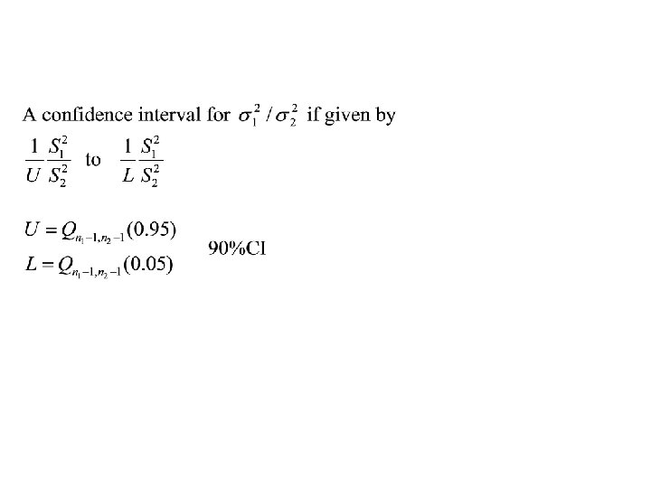 The ratio of two variances • When s 12 and s 22 come from independent samples from normal distributions, the variable where n 1 -1 and n 2 -1 are associated degrees of freedom for s 1 and s 2.