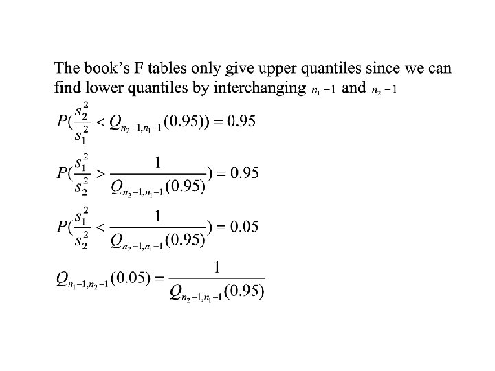 • For F-distribution So • This is particularly useful since in table B. 6 only quantiles for p larger than 0. 5 are given.