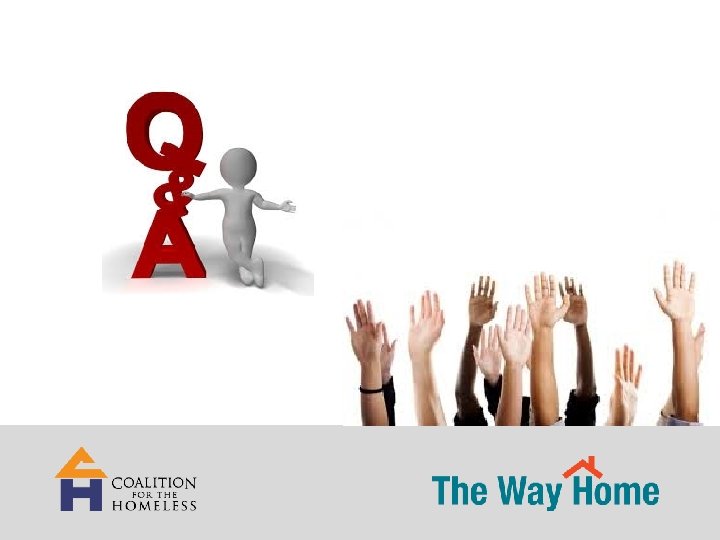Thank You!! The Coalition for the Homeless leads in the development, advocacy, and coordination of community strategies to prevent and end homelessness. The Way Home is the collaborative model to prevent and end homelessness in Houston, Harris, Ft. Bend, & Montgomery Counties. For more information visit www. thewayhomehouston. org Ana Rausch 832 -531 -6005 arausch@homelesshouston. org