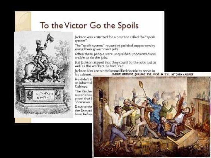 In 1834, the Whig Party forms, mostly as a reaction to Andrew Jackson and his supporters. Henry Clay, John Quincy Adams, Daniel Webster…eventually Abraham Lincoln They believe in the American System…tariffs, infrastructure and federal control of the banking system