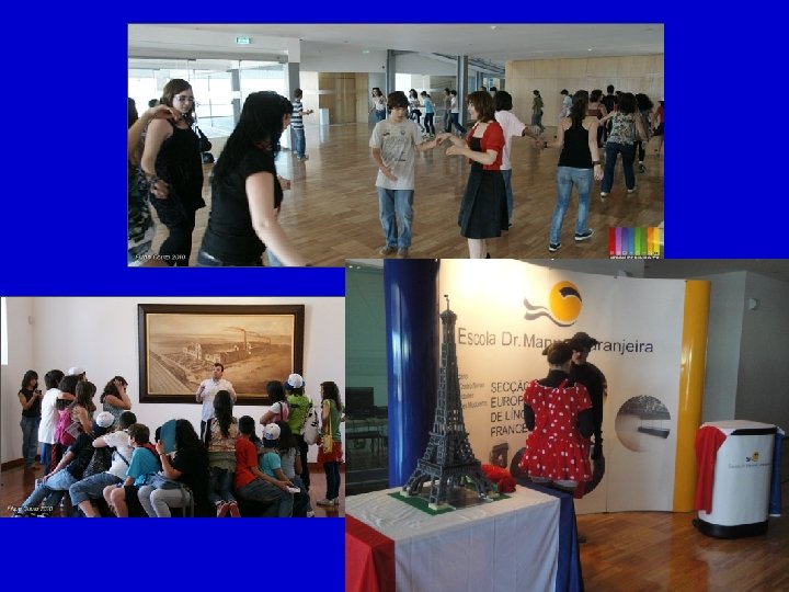 Sections européennes de langue française au Portugal “Un pari gagné” • Valorisation des connaissances culturelles sur la France et les pays francophones: • Diaporamas. • Chansons. • Films: La journée de la jupe, Astérix - mission Cléopâtre, Mia et le Migou. • Fête du Cinéma français: Les Enfants de Timpelbach. • Fête de la langue française. • Dégustation de crêpes. • Voyage en France (du 4 au 10 juillet 2010).