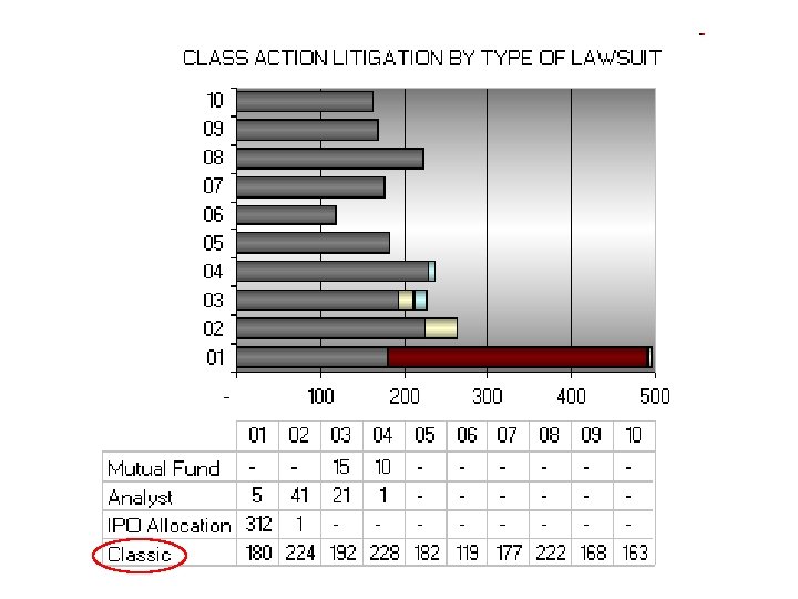 Federal Securities Fraud Class Action Litigation (lawsuits filed) Pre-Reform Post-Reform Stanford Class Action Clearinghouse