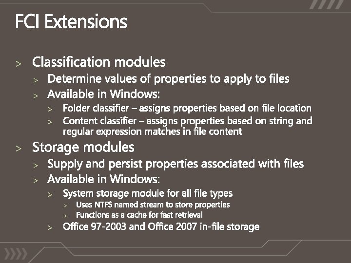 > > http: //microsoft. com/fci/ > > http: //technet. microsoft. com/en- us/library/dd 758765%28 WS. 10%29. aspx > http: //technet. microsoft. com/enus/library/dd 758756%28 WS. 10%29. aspx > > > http: //msdn. microsoft. com/en-us/windows/bb 980924. aspx > http: //msdn. microsoft. com/en-us/library/bb 972746%28 VS. 85%29. aspx > http: //code. msdn. microsoft. com/fci/ > >