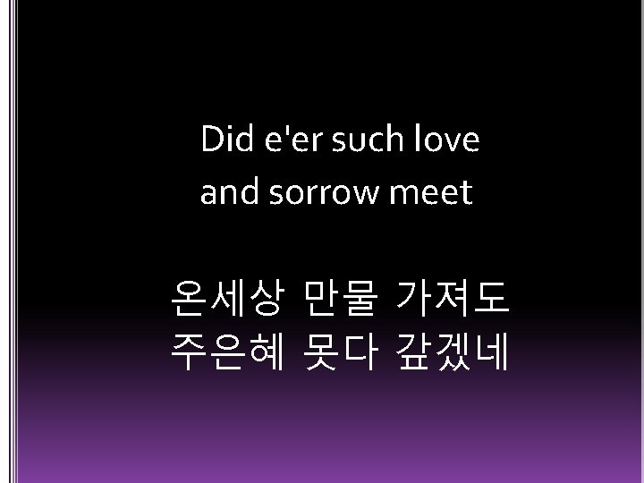 See from His head His hands His feet Slides: 15 Download presentation See from His head His hands His feet 못박힌 손발 보오니 큰자비 나타내셨네 Sorrow and love flow mingled down 가시로 만든 면류관 우리를 위해 쓰셨네 Oh the wonderful cross 오 놀라운 십자가 Bids me come and die and find That I may truly live 내게 참생명 주기 위해 죽으신 주 Oh the wonderful cross 오 놀라운 십자가 All who gather here By grace draw near 여기에 모인 우리 주님의 이름으로 Were the whole realm of nature mine That were an off'ring far too small 온세상 만물 가져도 주은혜 못 다 갚겠네 Love so amazing so divine Demands my soul my life my all 놀라운 사랑 받은 나 몸으로 제물 삼겠네
