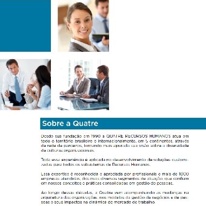 REFERÊNCIAS To whom it may concern, The American Chamber of Commerce for Brazil, a bilateral association established in the country since 1919, inform that Quatre Recursos Humanos, is a legal, serious and very active company and has been associated to this chamber for a long period. The Am. Cham Brasil indicate the company´s services. Sincerely, Jorge Perutz [ 2010 +] Regional Board President