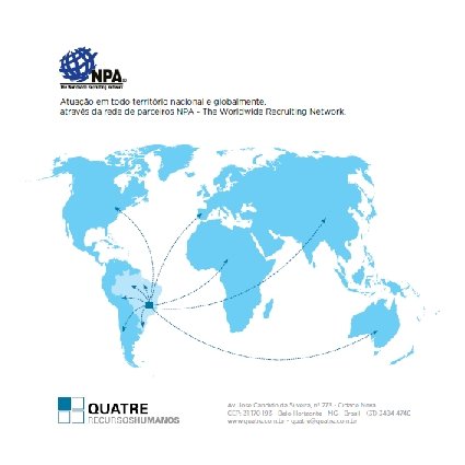 REFERÊNCIAS Quatre and its team in Brazil have assisted us in many search assignments in South America and recently found an outstanding candidate that was a great match for a very complex position our client was looking to fill, we ended up placing this candidate with success in a timely matter. A great recruiting partner. They are very diligent in their recruitment process and have a clear and broad understanding of the market in Brazil. I wouldn't hesitate in recommending them for any project in South America. " Gabriel Gonzalez-Saavedra, CPC Executive Search Manager | Barbachano International, Inc. | www. bipsearch. com 2531 Windward Way, Chula Vista, CA 91914 (619) 427 -2310 Ext. 106 | Fax: (619) 427 -2312 gabriel@bipsearch. com | www. linkedin. com/in/gabrielgonzalezsaavedra Human Capital Solutions for Mexico and the Americas We are a member-owner of NPA - The Worldwide Recruiting Network, your connection to premier independent recruiting firms on 6 continents.