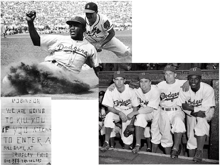 Robinson was a talented athlete who excelled in baseball, football, basketball, and track. The Brooklyn Dodgers asked him to join their team, even though he would face insults and hostility from some players and fans. Robinson helped lead the Dodgers to six National League titles. Soon, other white teams were hiring other African American players.