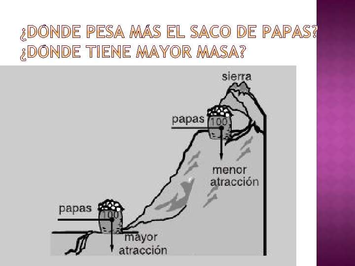 � Magnitud vectorial , su valor es variable. � Vector que siempre apunta hacia el centro de la Tierra. P= m x g