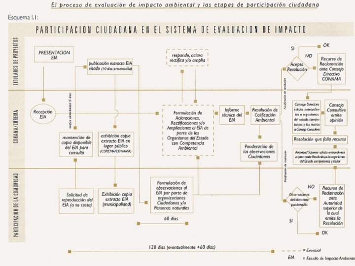 Los Procesos de Participación Ciudadana en el Medio Ambiente • El actual reglamento del SEA (sujeto a consulta pública) define que: “La participación ciudadana comprende los derechos a acceder y conocer el expediente físico o electrónico de la evaluación, formular observaciones y obtener respuesta fundada de ellas. ” (Título V, Artículo 80 Reglamento SEIA)