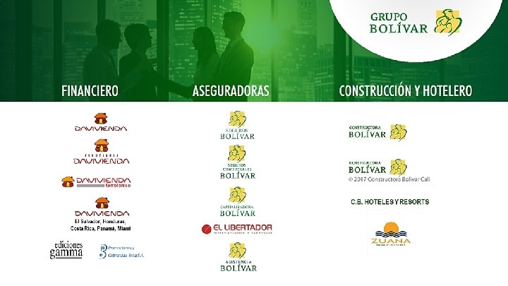 NUESTRA COMPAÑÍA • Nuestro propósito: GENERAR TRANQUILIDAD • Compañía de seguros orgullosamente colombiana fundada en 1939 • Calificación AAA por Fitch Ratings • Ofrecemos una gran variedad de beneficios para personas y empresas • Estamos en todo el territorio nacional • Pertenecemos a uno de los grupos económicos más importantes del país • GRUPO BOLÍVAR Pagamos • NOSOTROS RESPONDEMOS: • • Mejor reputación el pago de siniestros Canales de servicio (RED 322 y App) 1, 2 BILLONES de pesos* Más de 3, 8 MILLONES de clientes