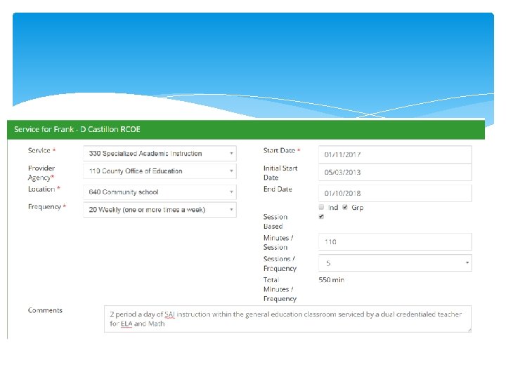 Services Switching to accurately identifying what we are providing In CS & Court these are all in gen ed I. S. and CBK are still following old format This impacts offer of FAPE