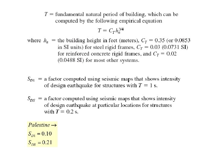 There are several analytical procedures to determine the magnitude of the base shear for which buildings must be designed, we will only consider the equivalent lateral force procedure, described in the ANSI/ASCE and UBC standard. Using this procedure, we compute the magnitude of the base shear as