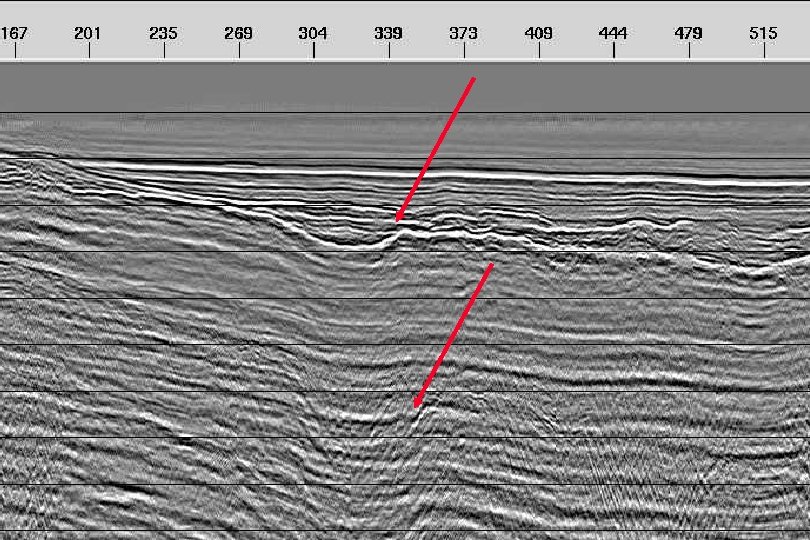 Data Processing • Initial processing by SU, subsequent intensive processing by Sterling Seismic Services, Ltd. • Significant changes between Brute stack Enhanced stack Kirckhoff Migration + FK-filtering