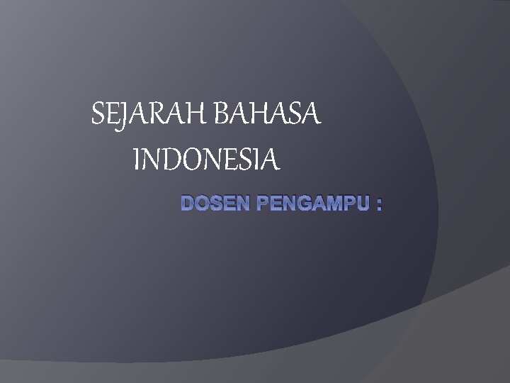 SEJARAH BAHASA INDONESIA DOSEN PENGAMPU :