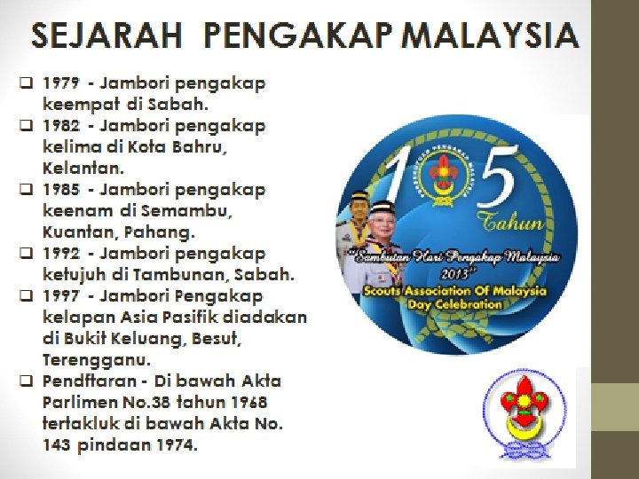 Tujuan Penubuhan • Tujuan Persekutuan ini hendaklah melatih dan menggalakkan perkembangan Rohani, Jasmani, Akal dan Pergaulan di kalangan generasi muda supaya berpeluang mengambil bahagian construtive dalam Pembangunan masyarakat untuk menjadi seorang yang bertanggungjawab.