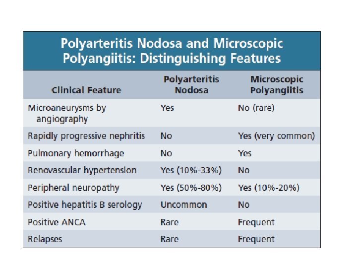 Diğer Bulgular Palpabl purpura Peteşi, ülser, nodül, ekimoz Mononöritis multipleks Organ tutulumları Akciğer; hemoraji GIS; perforasyon İritis, üveit, episklerit • Atralji, miyalji, ateş • •