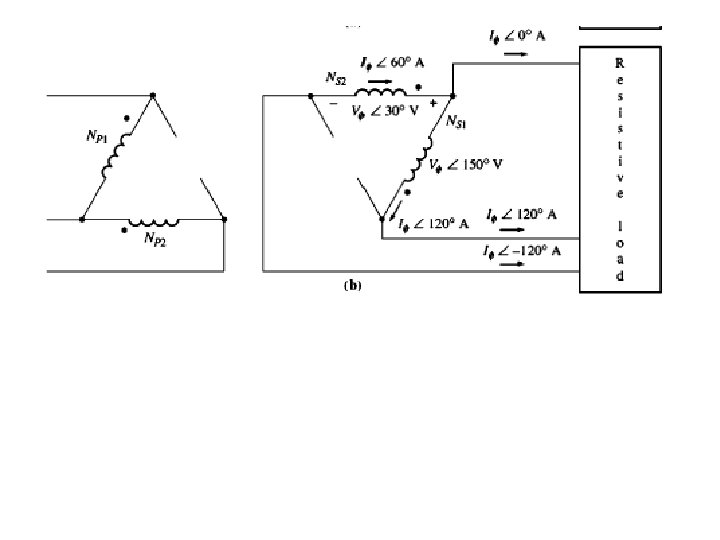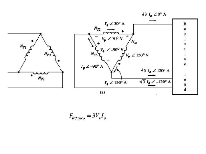 Ligação Delta abeto ou V-V (Aplicações) Operar uma carga trifásica com apenas dois transformadores monofásicos Aplicações? Observação: A potência ativa fornecida pelos transformadores é limitado em 57, 7% do original trifásico ou 86, 6% considerando apenas dois transformadores