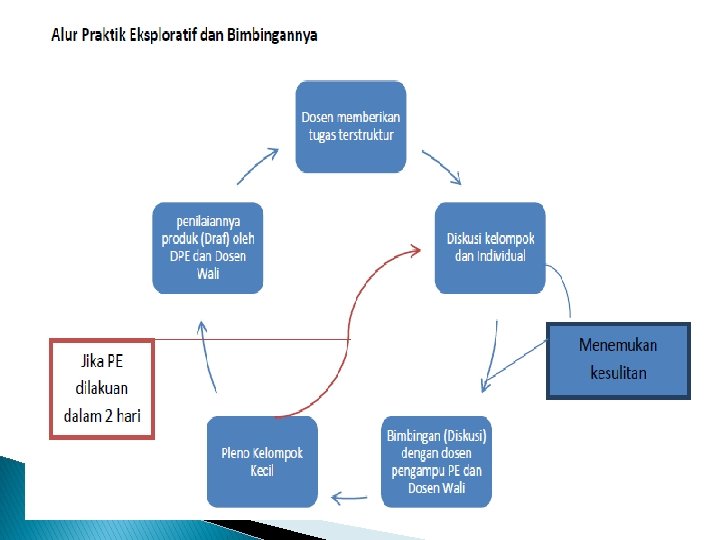 SISTEM PEMBELAJARAN � Pendidikan Bidang Studi (SSP) berbasis praktik eksploratif adalah pembelajaran dalam PPG berbentuk lokakarya (tatap muka, tugas terstruktur, dan tugas mandiri) yang bertujuan untuk menyiapkan peserta mampu mengembangkan perangkat pembelajaran (RPP, bahan ajar, media pembelajaran, dan pendukung pembelajaran lainnya) sehingga peserta dinyatakan siap untuk melaksanakan PMM. � PMM adalah praktik mengajar oleh peserta PPG di lapangan (sekolah mitera) setelah perangkat pembelajaran divalidasi oleh dosen pembimbing workshop