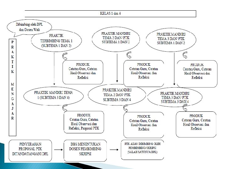 PRAKTIK MENGAJAR MANDIRI (PMM) � PMM akan dilaksanakan mulai bulan Agustus 2016 dan Berakhir bulan Desember 2016 � PMM dibimbing oleh guru mitra dan DPL � PMM terdiri dari praktik terbimbing dan praktik mandiri � PMM dilaksanakan di sekolah mitra yang melaksanakan Kurikulum 2013 � PMM untuk aspek mengajar hanya dilaksanakan pada kelas tematik terpadu (Kurikulum 2013) � PMM dilaksanakan secara kolaboratif antara peserta dan guru mitra