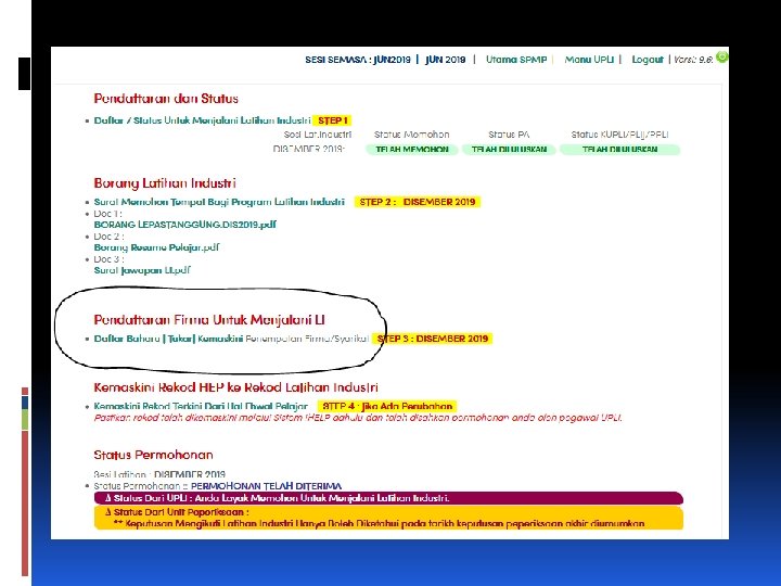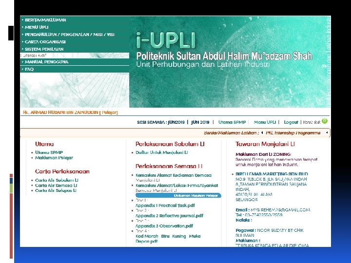 PEMANTAUAN/ PENYELIAAN LATIHAN INDUSTRI PEGAWAI UPLI: PN SOMSI : 019 -5783759 *BERHUBUNG DENGAN PEGAWAI LI JIKA ADA PERUBAHAN TEMPAT LI