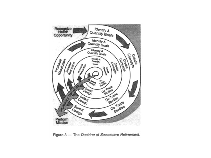 Spiral Model • Includes every other model • Risk-driven (vs. document driven or increment driven) • Radius of spiral represents cost accumulated so far