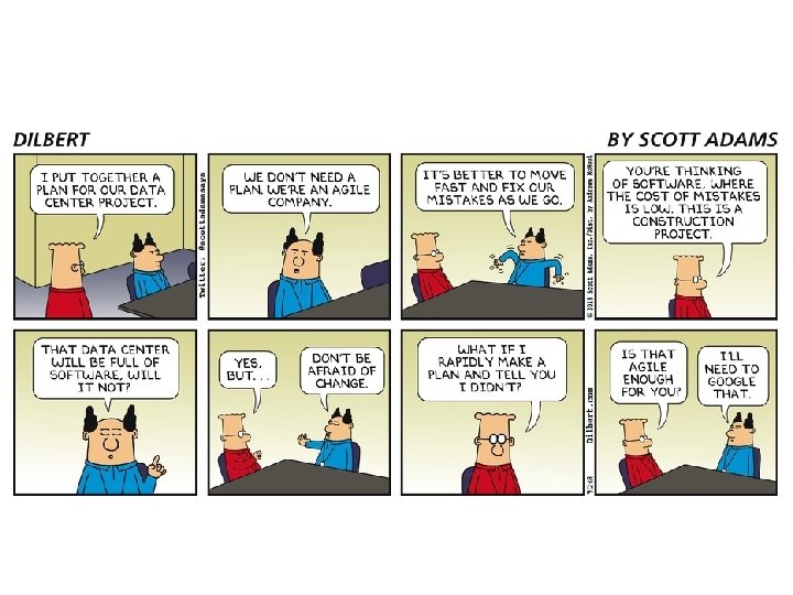 CMM Criticisms • Treats people as assembly line workers, i. e. , replaceable, unreliable • Humans are subordinated to defined processes • Why emphasis on “repeatable”? • Why five levels? Why a rigid order? – Peer reviews at level 3? Defect prevention at level 5? • Creates inflexible organizations and the illusion of control? • Places focus on the wrong things • Does this just ensure mediocrity? – Great software/hardware projects have done the opposite – Skunkworks, Apple (Mac), some Microsoft products